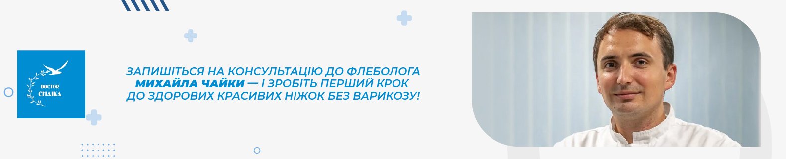 Звертайтеся до судинного хірурга, флеболога Чайки Михайла Олександровича, щоб отримати професійну консультацію, сучасну діагностику та ефективне лікування варикозу.